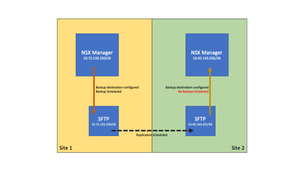 NSX-V Manager is hosted on the Management Cluster in Site 1, so how to ensure that in case of a Site failure, we will have NSX manager available and manageable? I mean, in case of Site 2 Failure it’s pretty straight forward, but what if Site 1 fails?